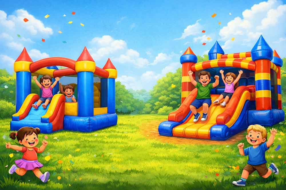 If you’ve ever compared different bouncy castles, you may have noticed two common materials in the product descriptions: Oxford fabric and PVC tarpaulin. At first glance, Oxford fabric often sounds like the obvious winner — it’s gentler on the skin, lighter, and easier to slide on. Yet, many commercial rental companies still prefer PVC tarpaulin…