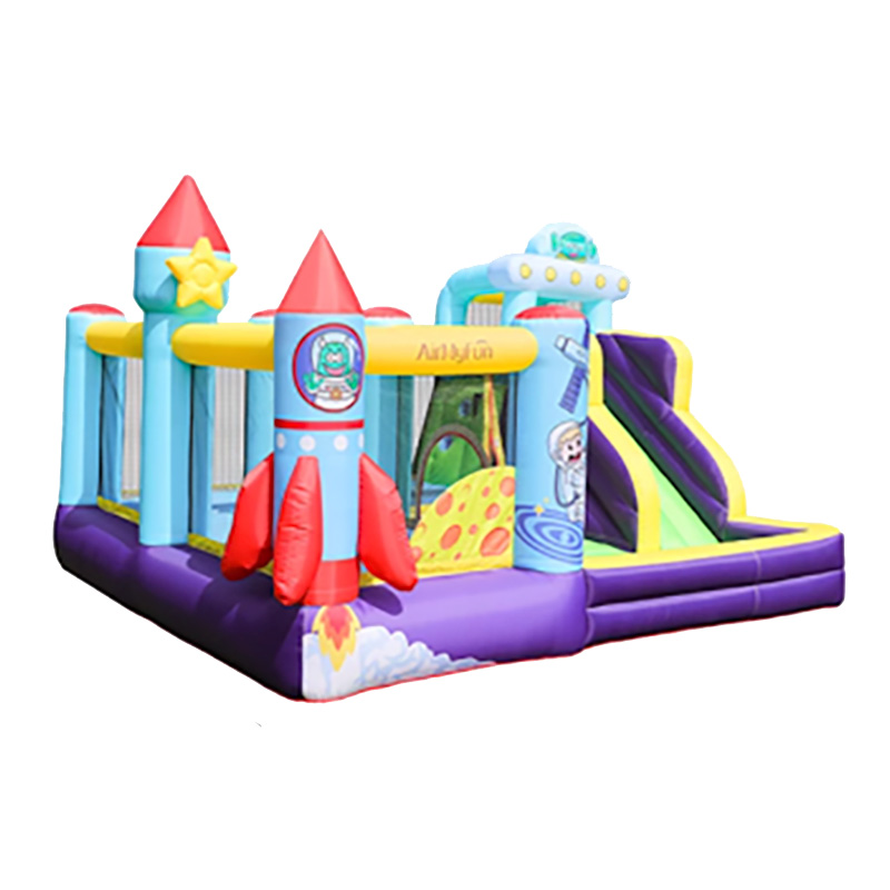 3.0m x 2.8m x 2.1m(height) A galaxy-themed bouncy castle to jump among stars and planets! Your kids can explore the universe without leaving the backyard!